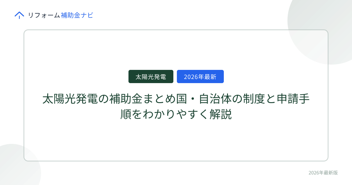 太陽光発電の補助金まとめ【2026年最新】国・自治体の制度と申請手順をわかりやすく解説