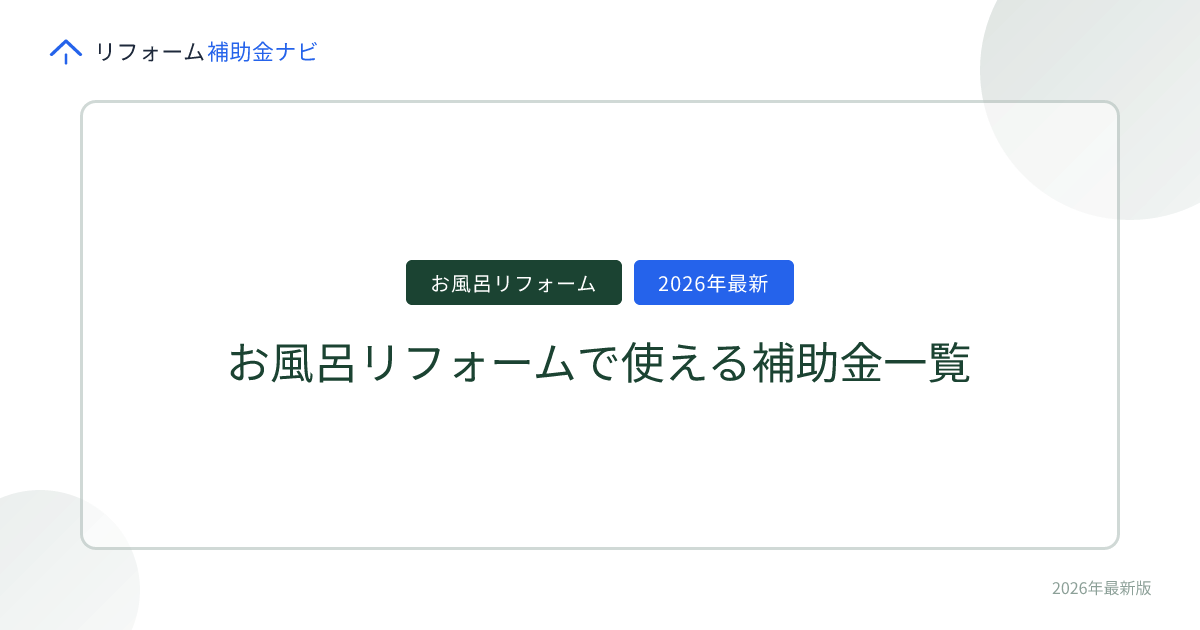 お風呂リフォームで使える補助金制度一覧【2026年度版】