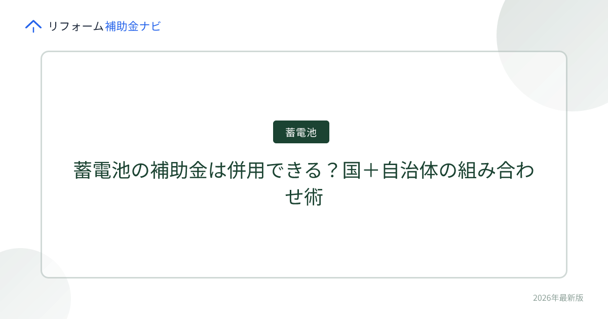 「国の補助金と市の補助金、両方もらえるの?」「二重取りになって怒られない?」——この疑問は蓄電池を検討する多くの方が持っています。結論から言えば、多くの場合、国の補助金と自治体の補助金は併用可能です。むしろ、両方使わないと損です。上手に組み合わせれば、蓄電池の導入費用を40〜60%削減できるケースもあります。