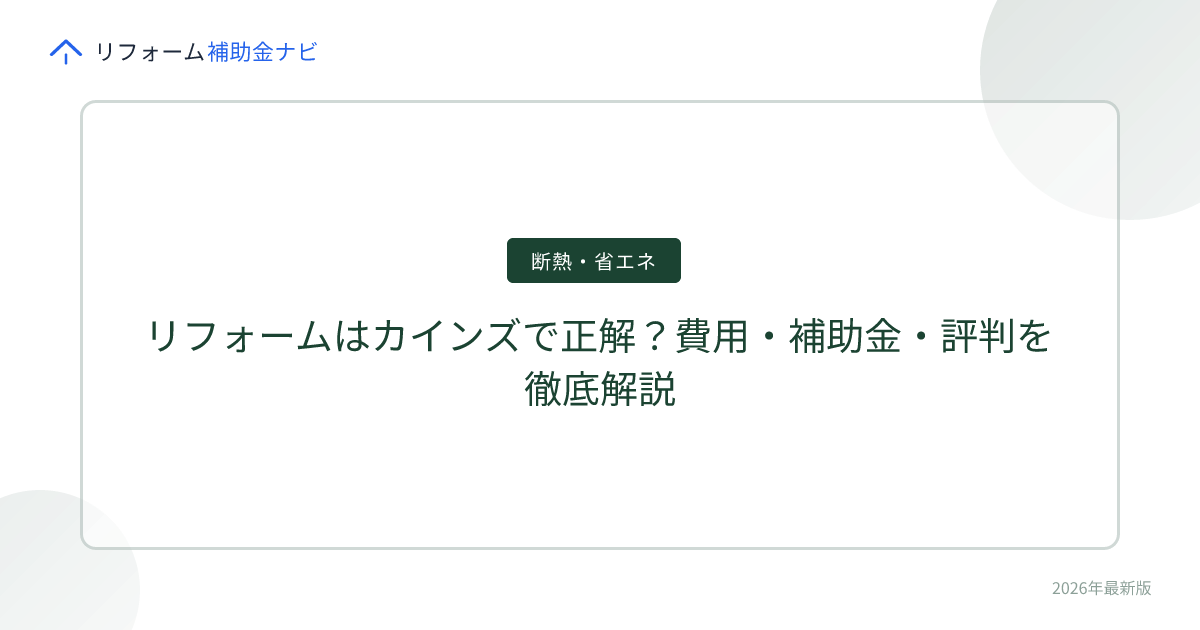 この記事では、カインズリフォームの費用相場から、2026年度に使える補助金の具体的な活用法、実際に利用した方の事例、メリット・デメリットまで、初心者の方にもわかるように丁寧に解説します。