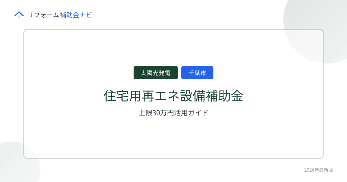 免責事項: 本記事はリフォーム補助金ナビDB(id=千葉市 住宅用再生可能エネルギー等設備導入事業/登録時点)と公開情報に基づき作成しています。補助金額・補助率・対象設備・申請期間は年度ごとに改定される可能性があり、最新の正式情報は必ず千葉市の公式案内および所管窓口にてご確認ください。本制度の交付決定を保証するものではなく、申請の可否は千葉市の判断によります。
