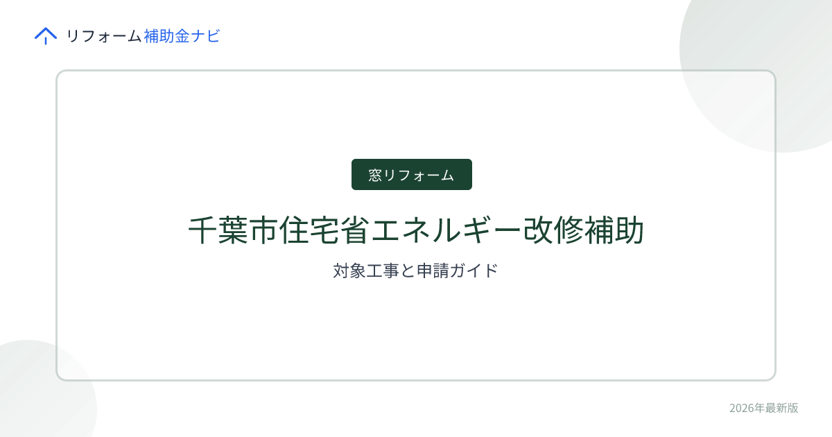 本記事はリフォーム補助金ナビ編集部が、自社DB登録の制度情報および公的機関の公開情報をもとに作成したものです。記事中の補助率・上限額・対象工事・申請フロー等は年度予算や要綱改定により変更される場合があります。「必ず受給できる」「確実にもらえる」といった効果を保証するものではありません。実際の申請・契約にあたっては、必ず千葉市の最新の公式要綱および所管窓口、ならびに施工業者にご確認ください。本記事の内容を用いた申請・契約・施工の結果について、当サイトは一切の責任を負いません。