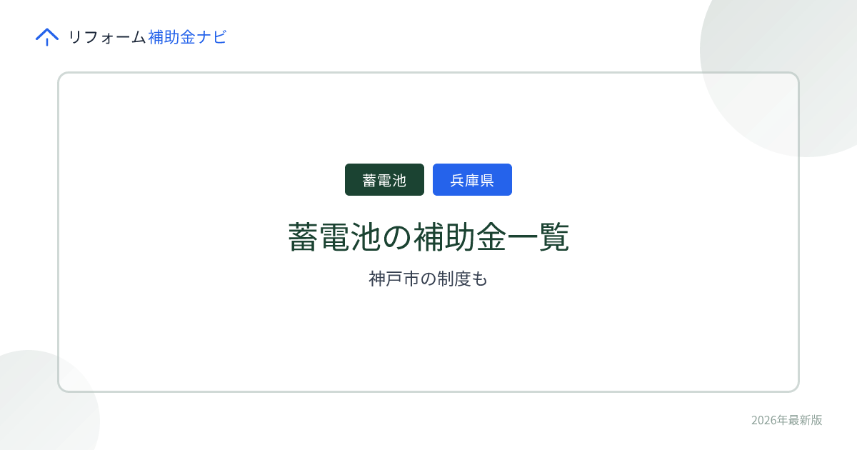 【兵庫県2026年版】蓄電池の補助金一覧|神戸市の制度も