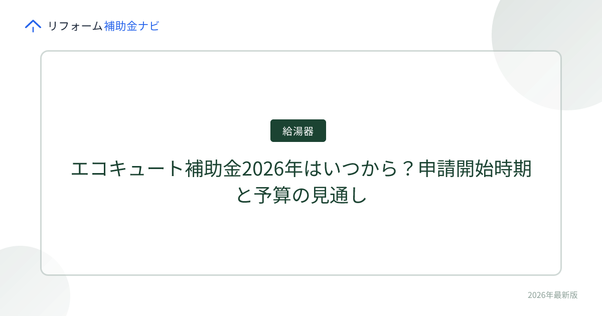 - 2026年度のエコキュート補助金はすでに申請可能