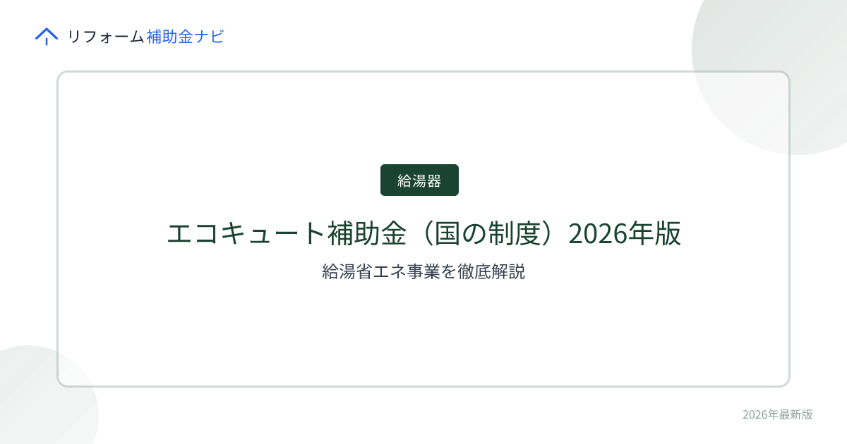 エコキュート補助金(国の制度)2026年版|給湯省エネ事業を徹底解説