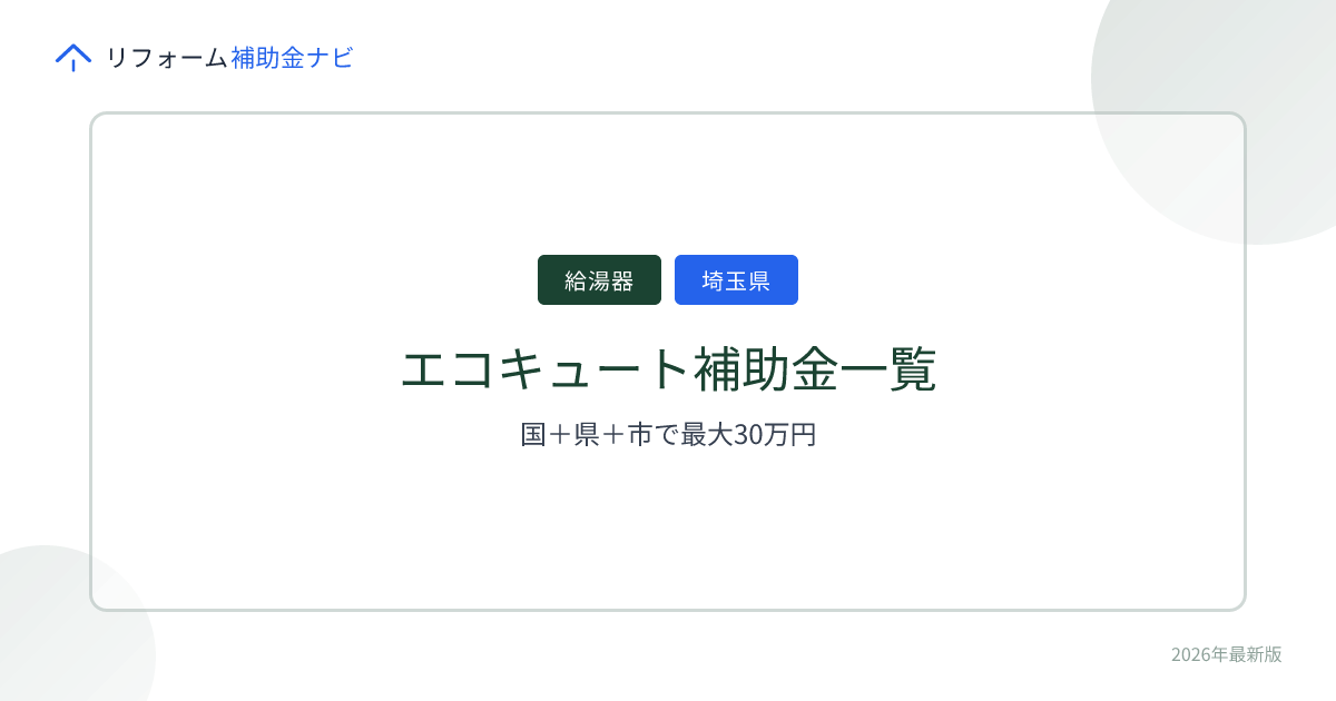 【埼玉県2026年版】エコキュート補助金一覧|国+県+市で最大30万円