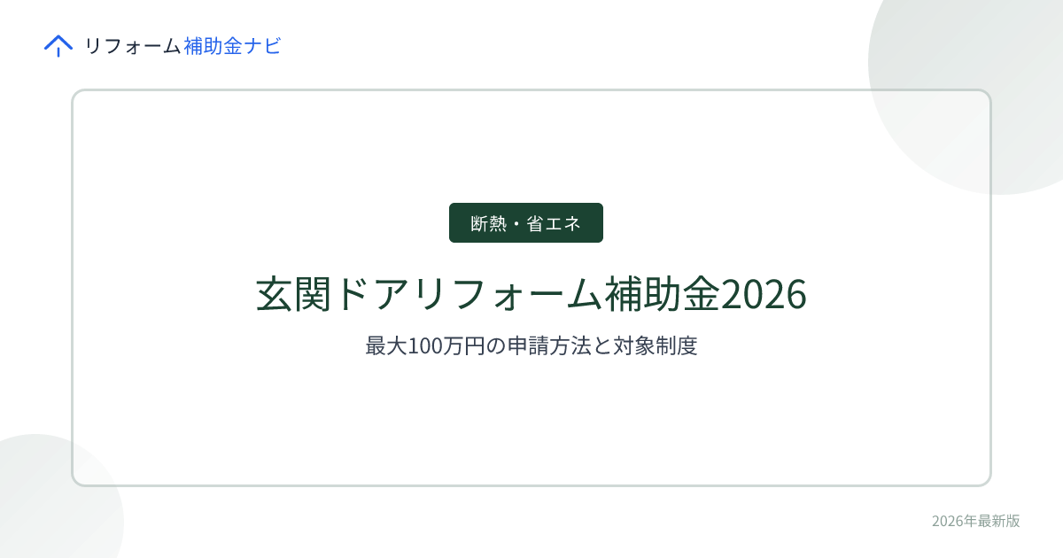 玄関ドアリフォームに使える補助金制度一覧【2026年度】