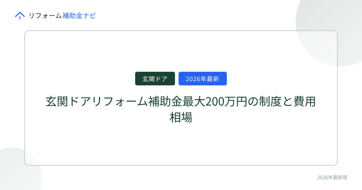 玄関ドアリフォーム補助金【2026年最新】最大200万円の制度と費用相場
