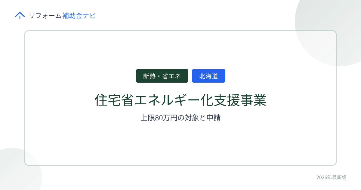 - ひとことで言うと: 北海道内の住宅で省エネ改修(断熱・高効率設備)をすると、最大80万円が補助される制度