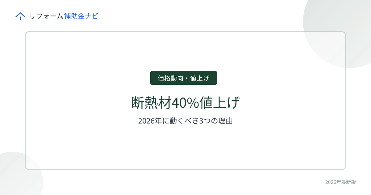 断熱材40%値上げ|2026年に動くべき3つの理由