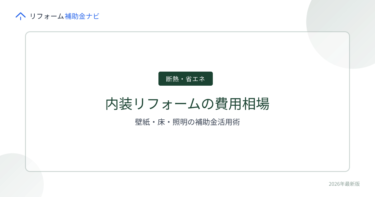 「壁紙が汚れてきた」「フローリングが傷だらけ」——内装リフォームの費用は1部屋10〜30万円が相場です。壁紙・床・照明をまとめて変えるだけで部屋の印象が一新します。そして内装リフォームと同時に断熱改修を行えば、国の補助金で費用を大幅に抑えられます。