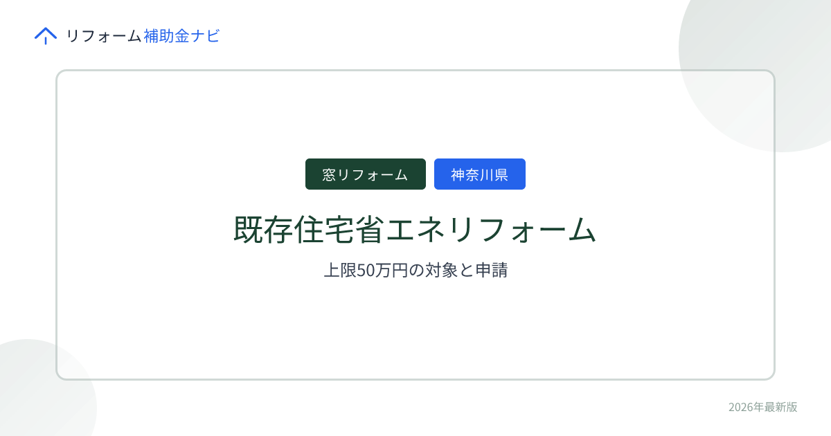 本記事はリフォーム補助金ナビDBの情報に基づき作成されていますが、補助金の内容や申請要件は変更される場合があります。最終的な申請の可否、詳細な要件、必要書類については、必ず神奈川県の公式情報をご確認いただくか、直接お問い合わせください。当社は本記事の内容によって生じた損害について一切の責任を負いません。
