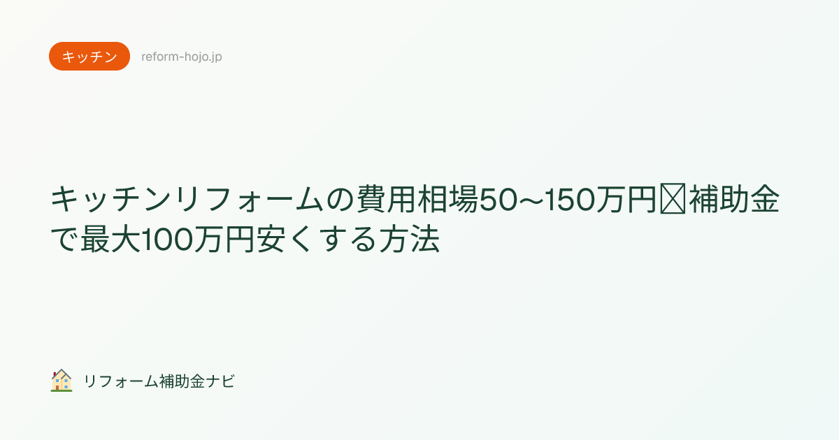 「キッチンをリフォームしたいけど、いくらかかるの?」——キッチンリフォームの費用相場は50〜150万円。システムキッチンのグレードと工事範囲で大きく変わります。そして国や自治体の補助金を使えば、最大100万円まで費用を抑えられる可能性があるのをご存じですか?