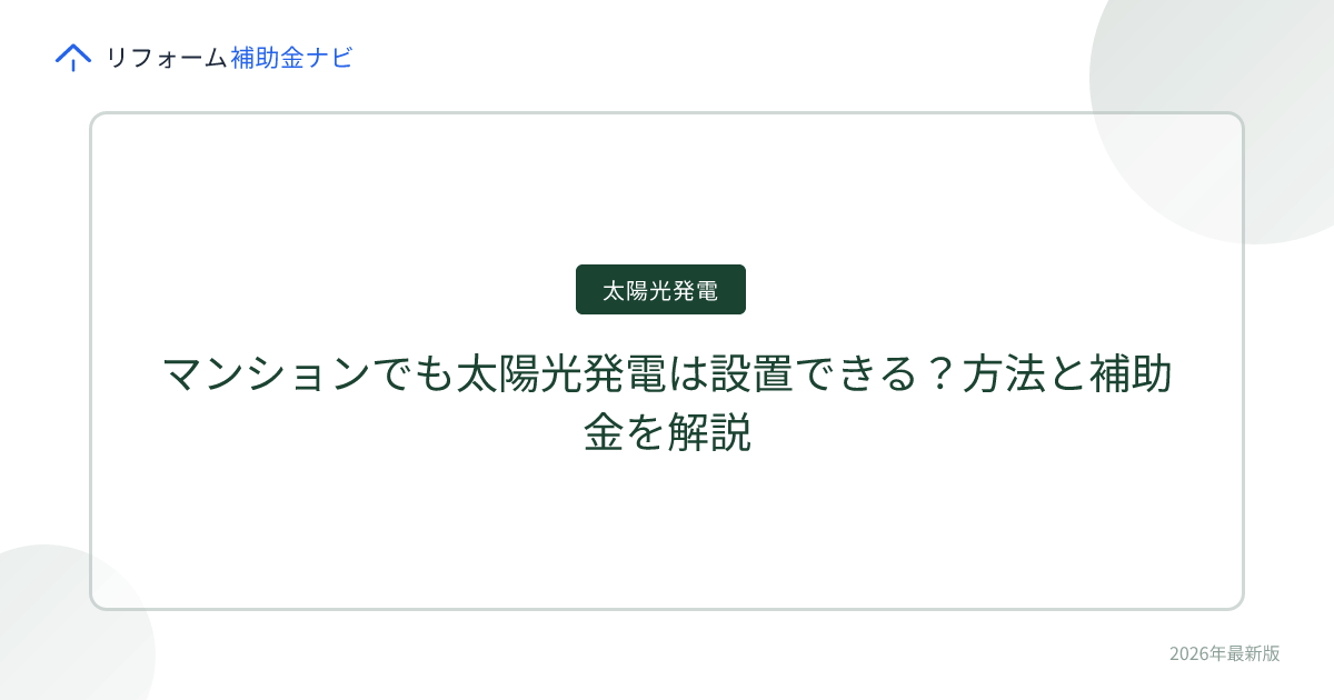 マンション太陽光の補助金