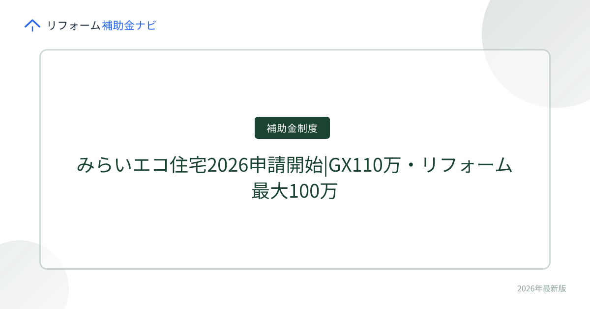 みらいエコ住宅2026申請開始|GX110万・リフォーム最大100万