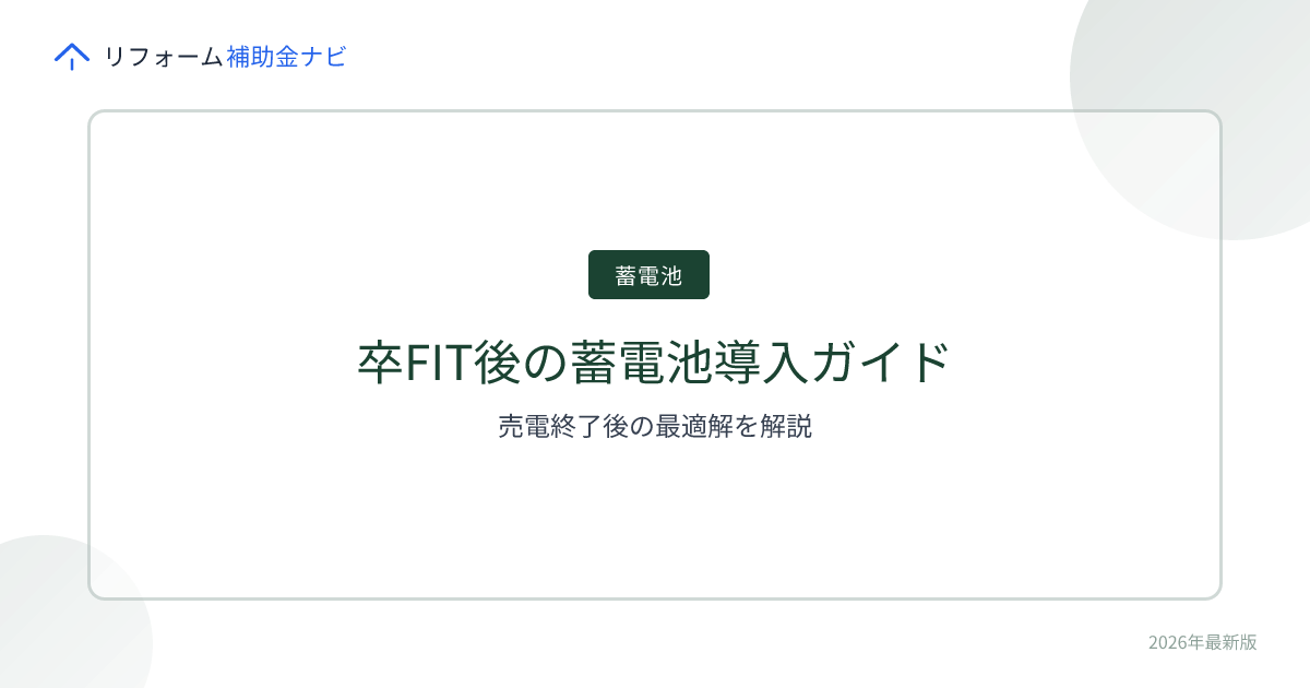 - 自治体の補助金: 卒FIT家庭向けの上乗せ補助を設けている自治体もある