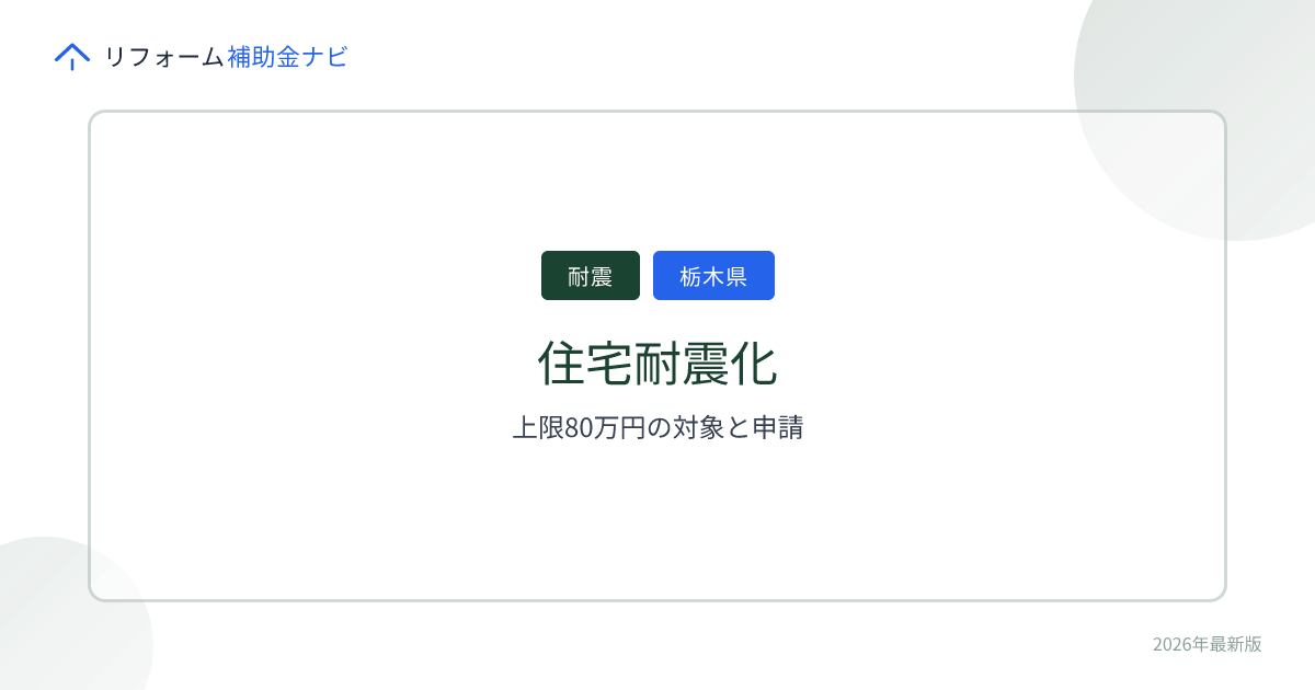 - ひとことで言うと: 1981年5月以前に建てられた、旧耐震基準の住宅を耐震改修する工事費用の一部を、栃木県が最大80万円まで支援してくれる制度です。