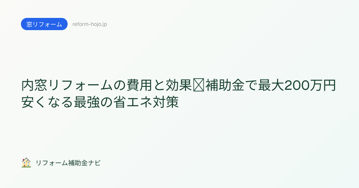 「冬の窓際が寒い」「結露がひどい」——その悩み、内窓(二重窓)の設置で劇的に改善できます。費用は1箇所5〜15万円。そして内窓は先進的窓リノベ2026事業で最大200万円の補助が出る、最もコスパの良いリフォームです。