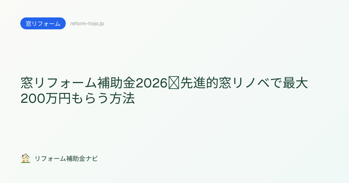 窓リフォーム補助金2026|先進的窓リノベで最大200万円もらう方法